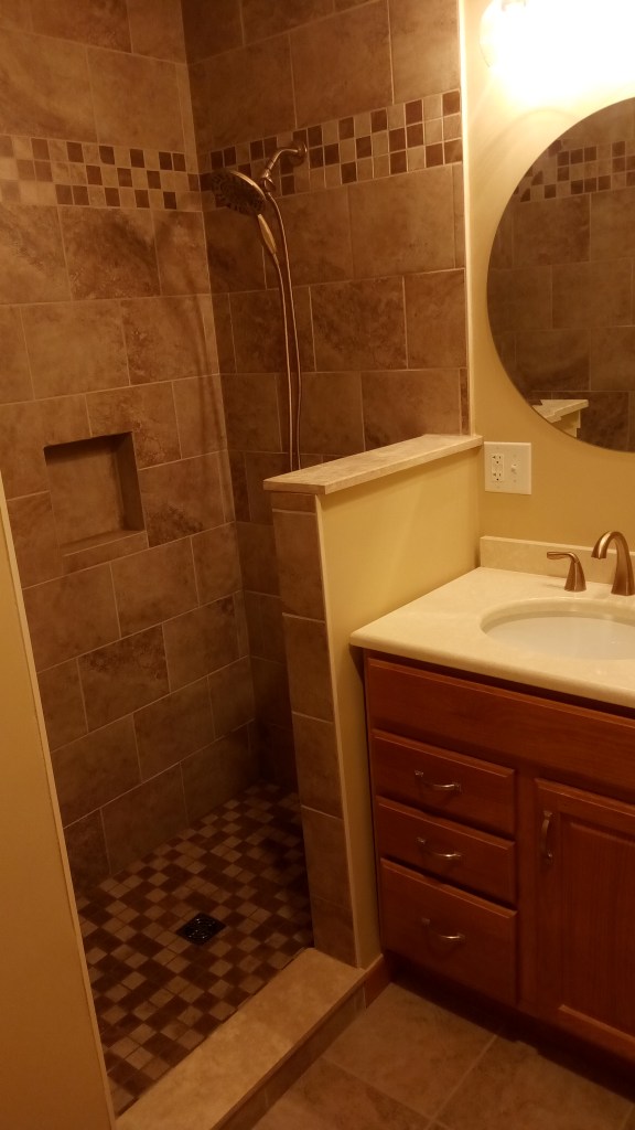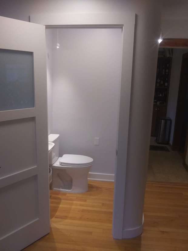Converted a half bath into a full bath by moving a mudroom wall and building a customized laundry station.